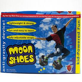Contrast that with the box for Moon Shoes, which Amazon and Toys R Us won't even show on their Web sites, presumably out of shame and embarrassment for a company that clearly hasn't hired a graphics person since 1992. Look at that shirt. He looks like an extra from Ghostwriter. I know you're busy scamming parents into buying fake trampoline footwear, but at least try to pretend you guys have a working phone number by Photoshopping a Barack Obama tee on that kid. Or something. It's sickening.